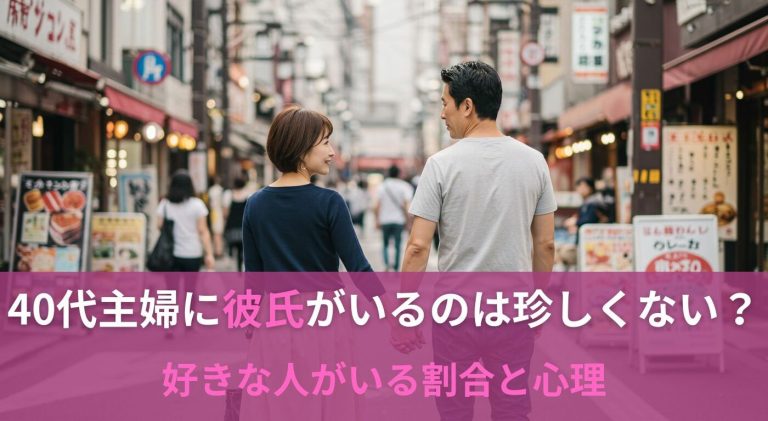 結婚して家庭を築きながらも「彼氏が欲しい」「夫以外の男性を好きになった」40代主婦は少なくありません。実際、調査データからも意外と多い事実が出ています。 ここでは、40代主婦が彼氏を求める心理や実際の割合、出会いのきっか … 続きを読む 40代主婦に彼氏がいるのは珍しくない?好きな人がいる割合と心理