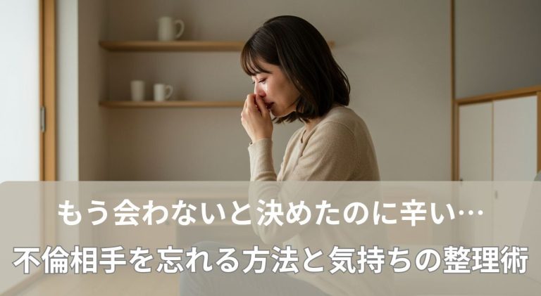 「もう会わない」と決断したのに、心が相手を求めてしまう──。不倫を終わらせたはずなのに、未練や罪悪感、寂しさに押しつぶされそうになる人は少なくありません。忘れたいのに忘れられない気持ちは、自分の意思が弱いからではなく、不 … 続きを読む もう会わないと決めたのに辛い…不倫相手を忘れる方法と気持ちの整理術