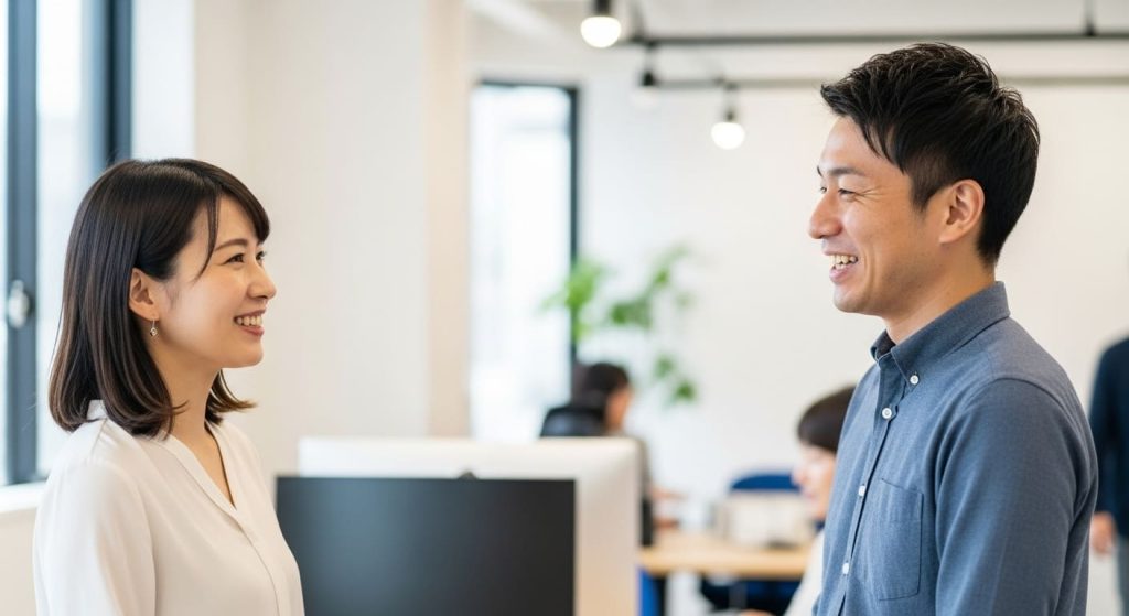 最初のきっかけは、業務の延長線上にある軽い会話がおすすめです。例えば、「今日の会議、長かったですね」「このプロジェクト、進んできましたね」といった仕事の話の後に、「そういえば、週末はゆっくりできましたか?」というように一言添えるだけで、一気に空気が柔らかくなります。