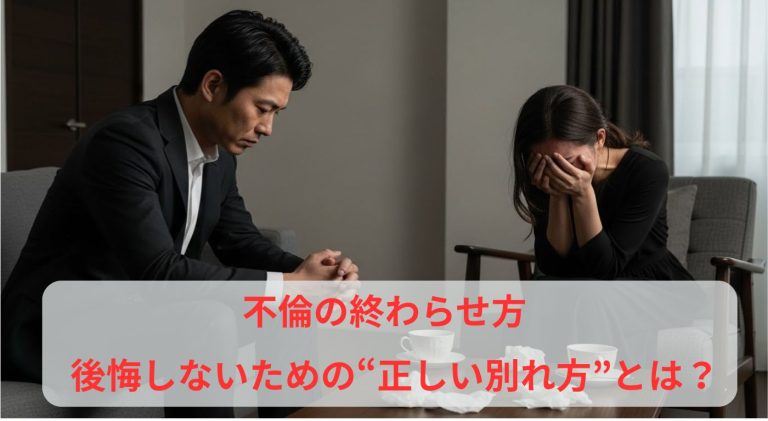 「この関係、もう終わらせたい…」そう思ったことはありませんか?不倫関係に身を置く多くの人が、どこかで“終わり”を意識しています。罪悪感や将来の不安、愛情との葛藤。複雑な感情のなかで「どう別れればいいのか分からない」と悩ん … 続きを読む 不倫の終わらせ方|後悔しないための“正しい別れ方”とは?