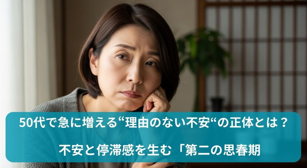 50代に訪れる精神的な揺らぎや違和感は、「第二の思春期」と呼ばれることがあります。これは、加齢によるホルモンバランスの変化や、心身のエネルギーが切り替わる時期に起こりやすいものです。特に更年期に差し掛かる時期と重なるため、身体の不調とともに感情の波も大きくなります。