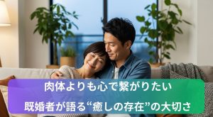 セカンドパートナーと聞くと、刺激・ときめき・非日常、そんなイメージを持たれがちです。しかし、癒しを求めてこの選択肢を考える男性の本音は、まったく別のところにあります。