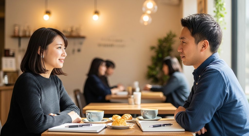 • 趣味や休日の過ごし方など、プライベートな会話が続く