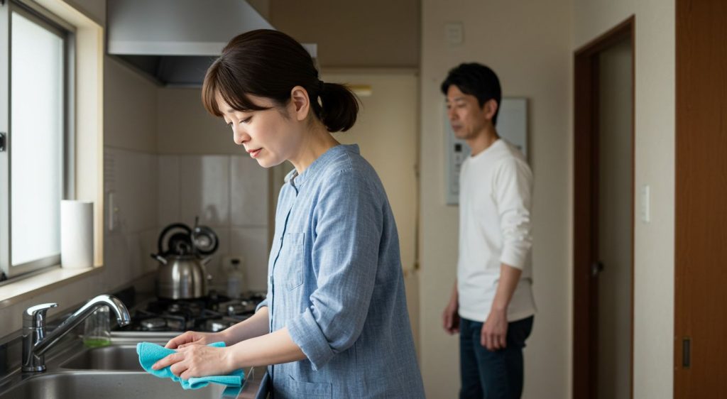 「食器を洗ったあと、シンクをピカピカにしていたら、夫が当たり前のようにその横で水を出して顔を洗っていたんです。何も言わずに。あの瞬間、なんで私はこんなに気を使ってるんだろうって、虚しくなりました」