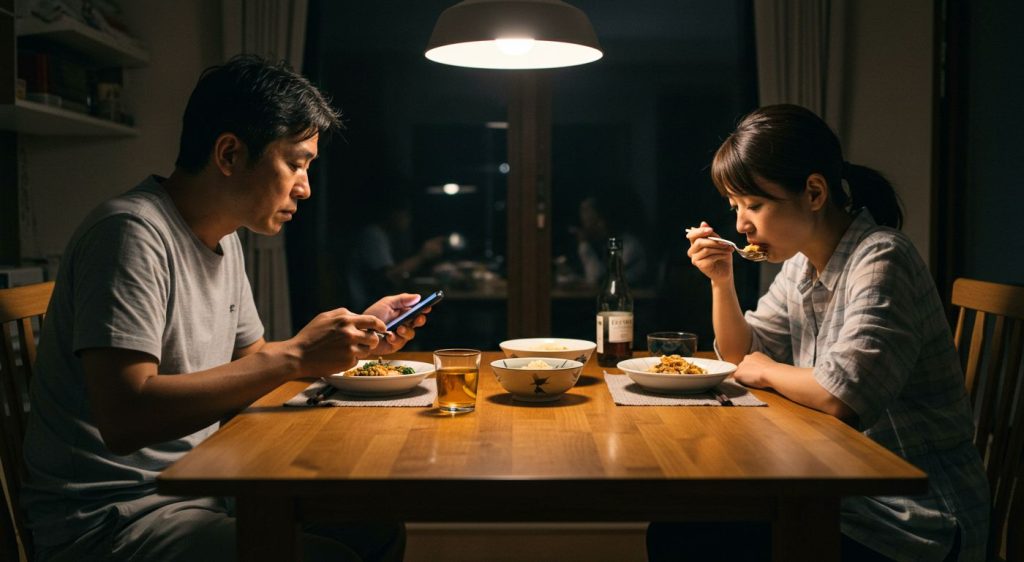 「夕食中、一言もしゃべらずにスマホとテレビだけ見てる夫。黙って食べて、黙って部屋に戻っていく姿に、“この人と家庭を築いてる”って実感がまったく持てなかった」
