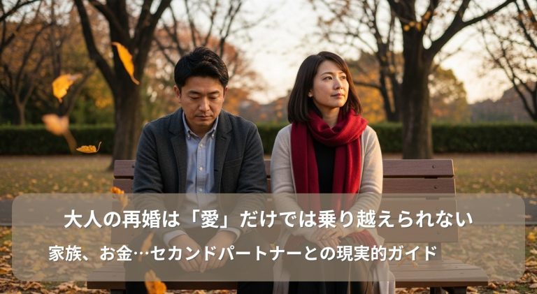 若い頃の恋愛や結婚とは異なり、50代以降の再婚には“愛”だけでは乗り越えられない現実が立ちはだかります。過去の傷、家族構成の変化、経済的責任、介護問題…。セカンドパートナーを求める気持ちは自然ですが、再婚は感情だけで決め … 続きを読む 大人の再婚は「愛」だけでは乗り越えられない:家族、お金…セカンドパートナーとの現実的ガイド