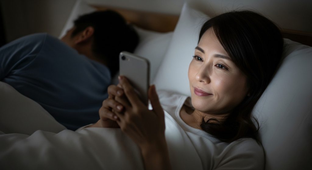 例えば、SNSで「共通の趣味」のグループに入って交流が始まり、「リアルでは夫婦・母としての時間」が終わった後に“自分だけの時間”としてスマホに向かうケースも増えています。