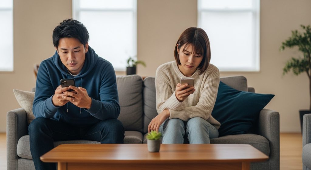 対面では、ほとんど会話がない状態でした。食事の時間もテレビを見ながらで、必要なことだけを短く伝える毎日。同じ家にいても、お互いスマホを見ている時間が増えていました。
