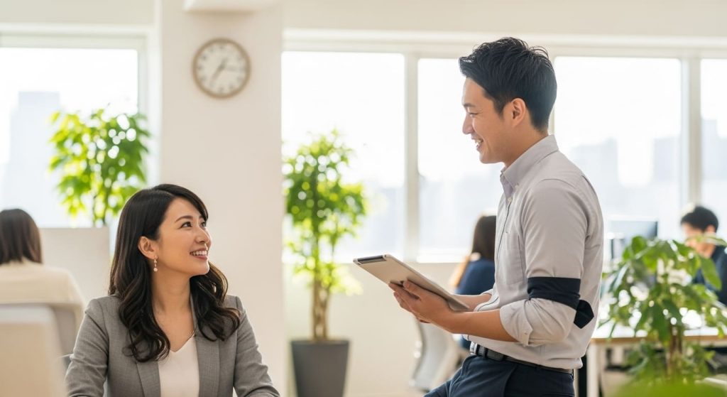 - 会話中にさりげなく飲み物を差し出したり、資料をまとめてくれる